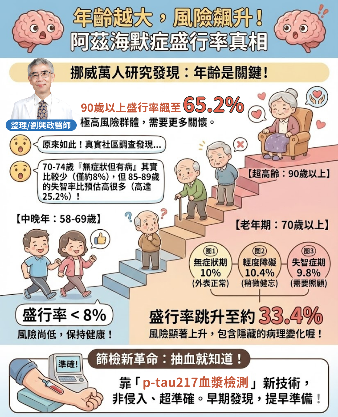 - 治療契機: 隨著新一代治療方式的出現,早期診斷變得至關重要 。研究預估,70 歲以上的社區民眾中,約有 11% 的人可能符合這些新藥的治療標準 。
