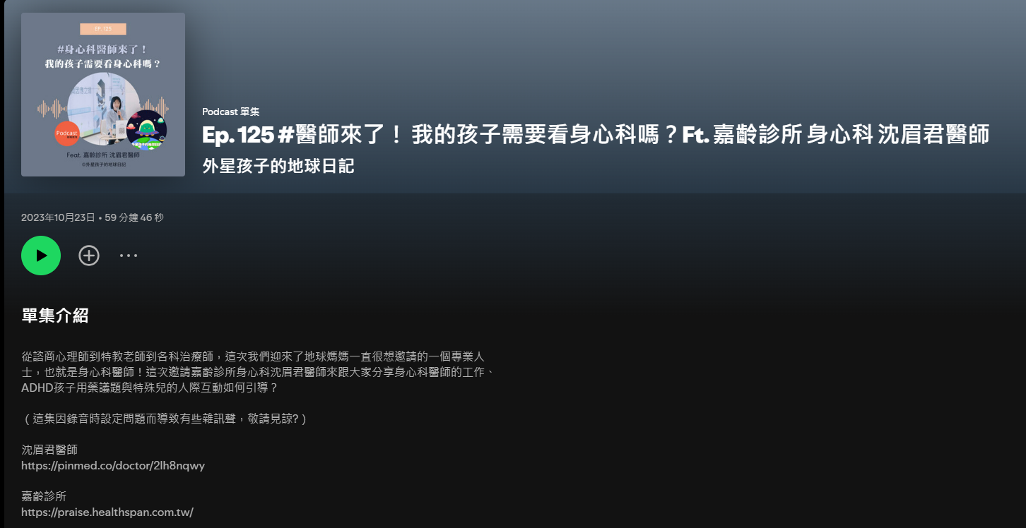 外星孩子的地球日記》Ep. 125 #醫師來了! 我的孩子需要看身心科嗎?Ft. 嘉齡診所身心科沈眉君醫師