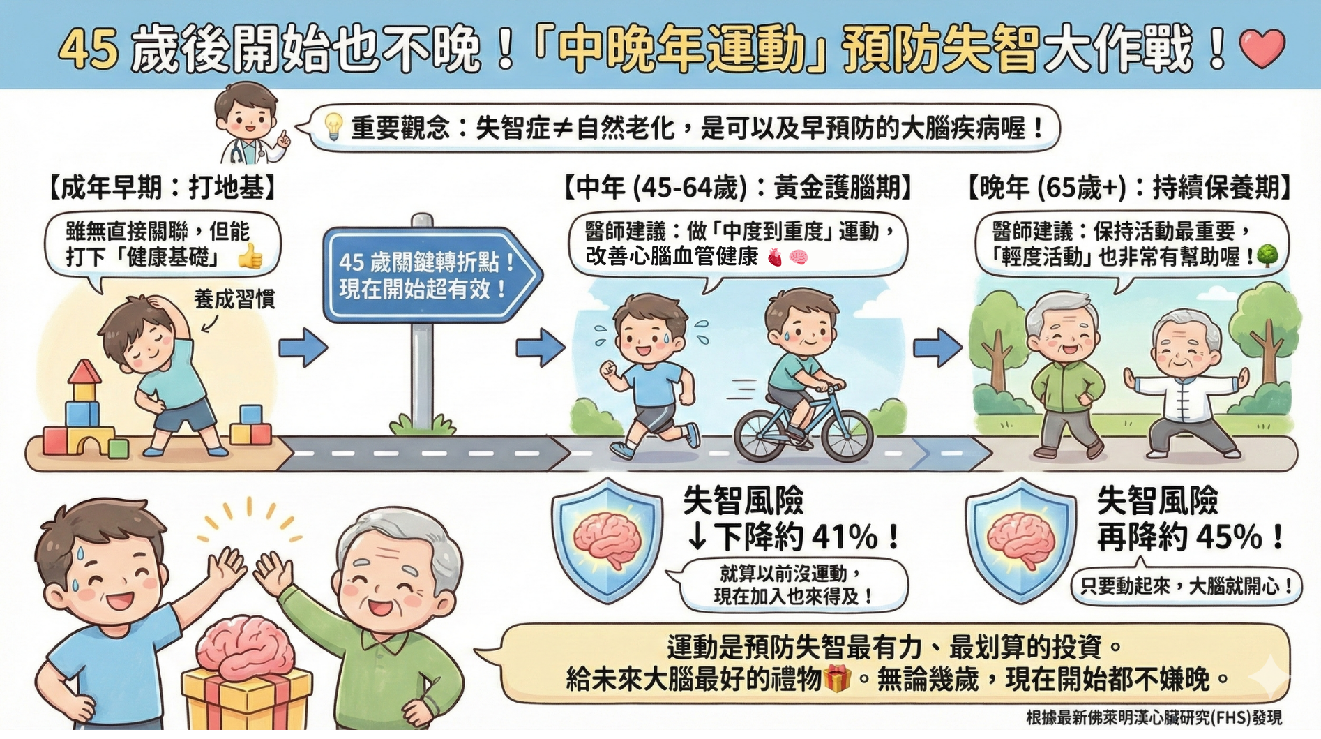 #失智症#失智症預防#阿茲海默症#大腦健康#認知功能#運動預防失智#中年運動#活躍老化#規律運動#健康習慣#健康老化#預防醫學#健康生活#佳齡健康#健康科普#規律運動好處#阿茲海默症預防#運動能降低失智風險嗎#45歲後如何預防失智